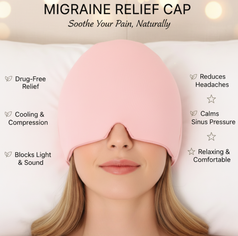 Migraine Relief Hat - 360° Cold Therapy Ice Pack for Headaches & Puffy Eyes
